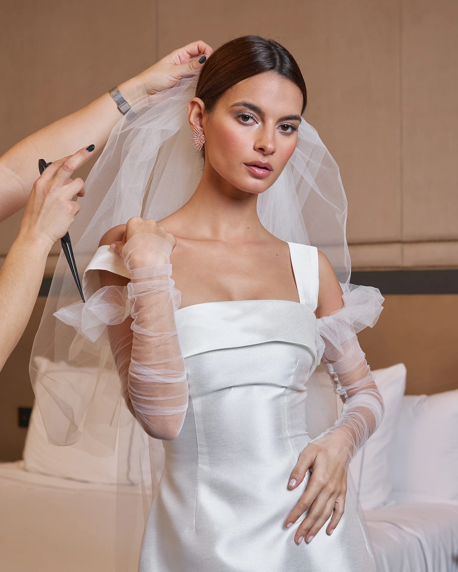 ¡Bienvenido Charlotte! Te presentamos a uno de nuestros vestidos de novia corto de la nueva colección. Combina originalidad y elegancia y está confeccionado en gazar. Se caracteriza por su falda acampanada y solapa en el escote. Cada detalle de este vestido ha sido cuidadosamente confeccionado por costureras en España. Te lo recomendamos para bodas civiles o como segundo vestido.